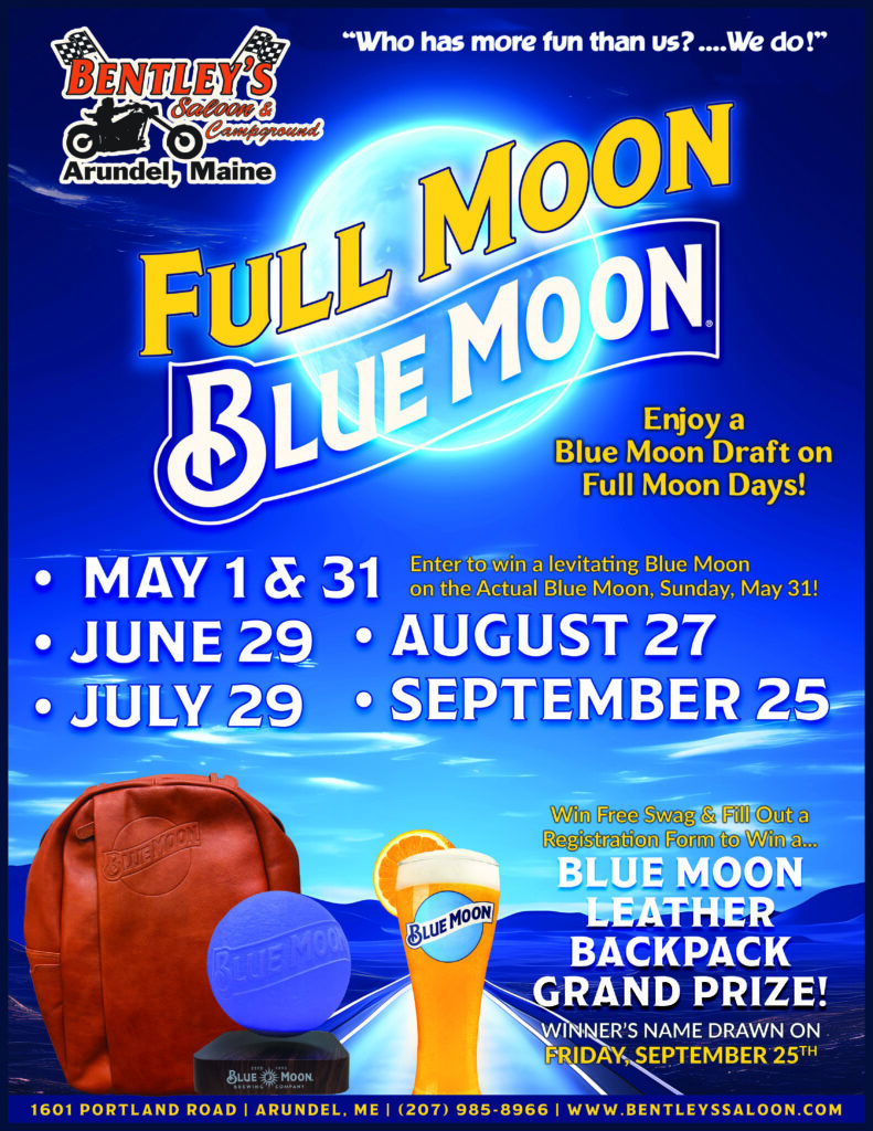 Every full moon, FREE Blue Moon swag for Blue Moon drinkers and a chance to win a Levitating Blue Moon (winner’s name drawn May 31) & Blue Moon Leather Back Pack (winner’s name drawn Sept 25)!!