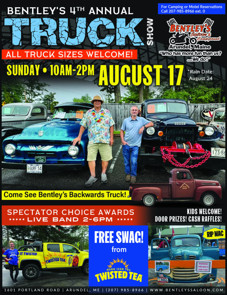 Every Tuesday from 5 pm til dusk (May 17 through Sept 20, 2022), car enthusiasts show off their special interest vehicles at the Saloon’s parking lots, often times more than 100 on display! There are no entry fees for car show owners or spectators. Car show owners receive door prizes, spectator choice awards and a chance to win a FREE toolbox valued over $1000 which is donated by our local Biddeford, Sanel NAPA Auto Parts Center Store. Cash raffles for everyone to play. We donate a portion of the money to our Town of Arundel’s Holiday Program for local residents in need of a helping hand during the holiday season.