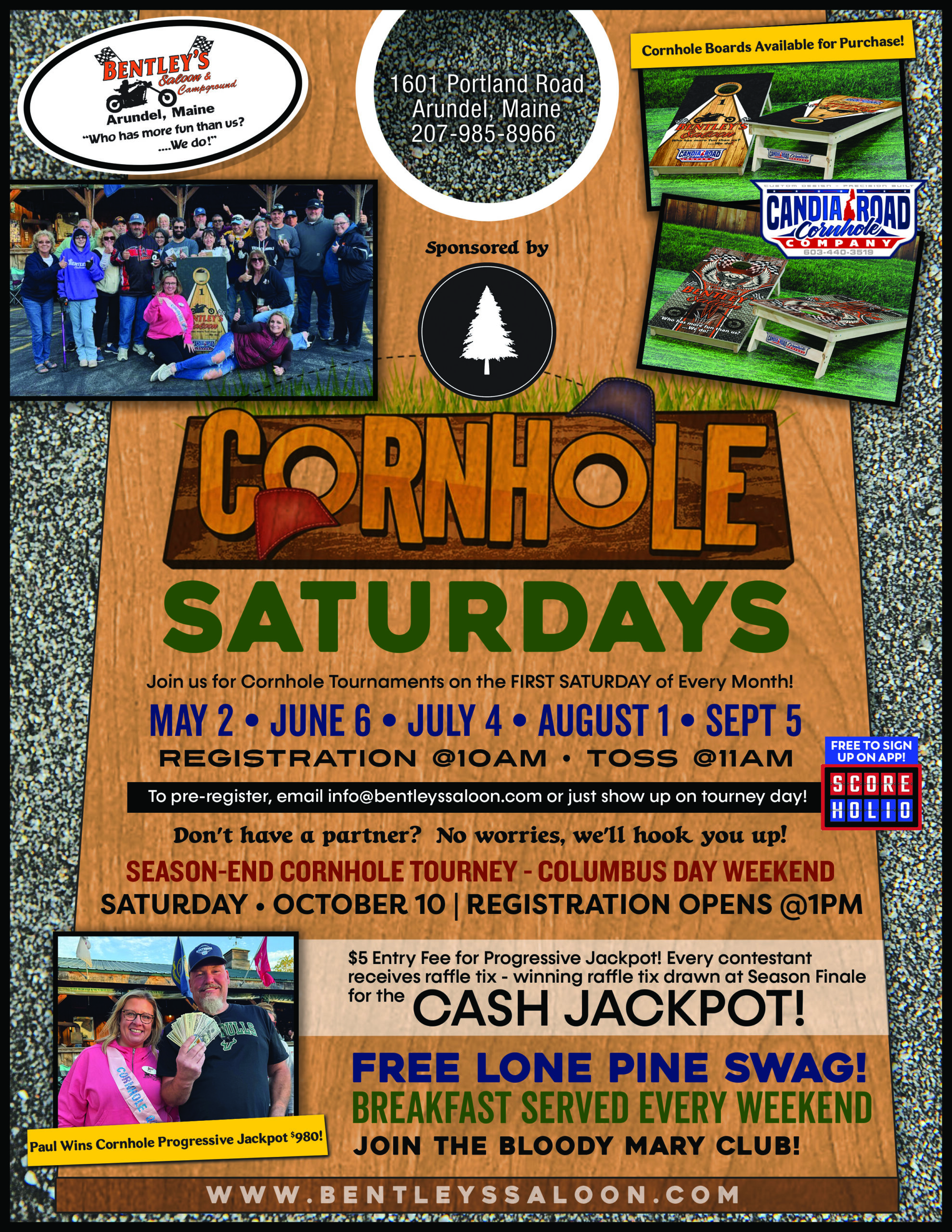 Cornhole Tourney's at Bentley's are fun! The players are friendly and like to compete. Some of them enjoy adult beverages while competing! No partner, no worries, we'll hook you up! Each month you enter, $5 fee for a progressive jackpot given away at last tourney! Free swag from Lone Pine Brewery! Registration opens at 10…